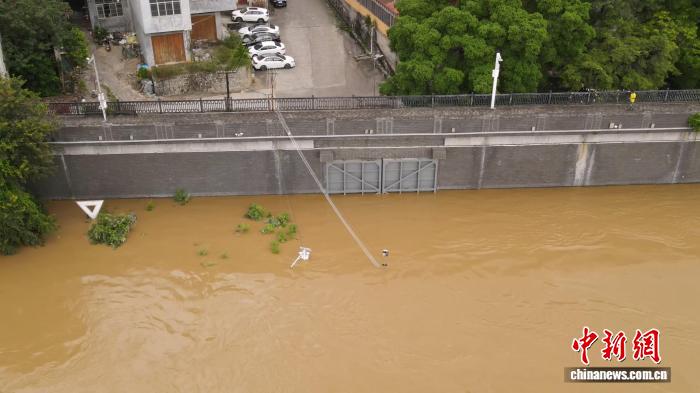 图为郁江部分防洪闸门已被洪水淹没过半。安宇 摄